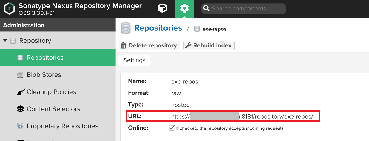 exe-repos를 클릭하면 상세 정보를 확인할 수 있다. URL에 표시 된 repository 주소가 실제 배포에 사용된다.