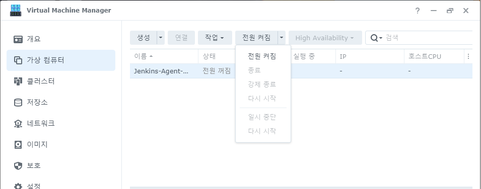 가상 이미지의 전원을 켜면 상태가 실행 중으로 변경된다.