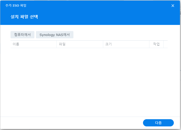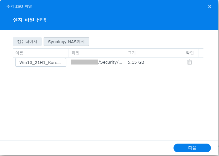 - 컴퓨터에서 - 로컬 PC에 있는 ISO 파일을 NAS로 업로드한다.