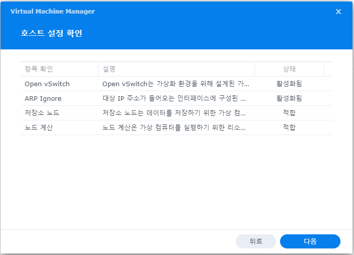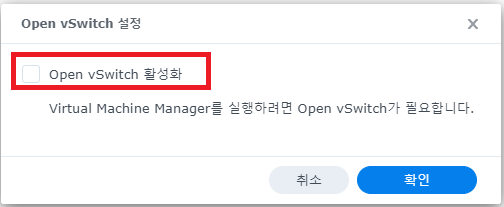 Open vSwitch 활성화에 체크하고 확인 버튼을 클릭한다.