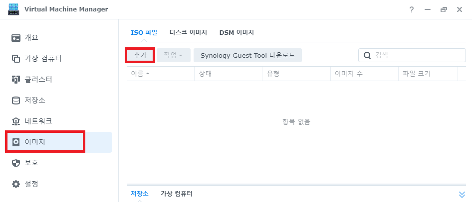 - Synology NAS에서 - NAS에 저장되어 있는 ISO 파일을 사용한다.