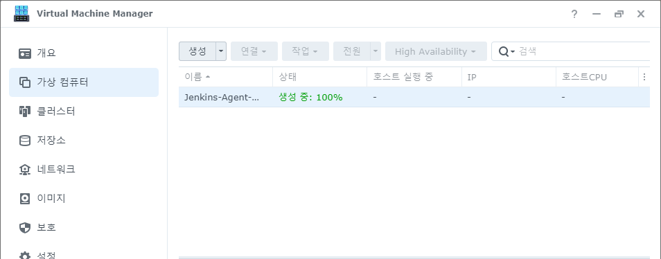 호스트 (시놀로지 NAS)의 설정을 확인한다.