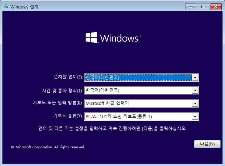 이제 일반 PC에 설치하는 과정과 동일하게 진행하면 된다.
