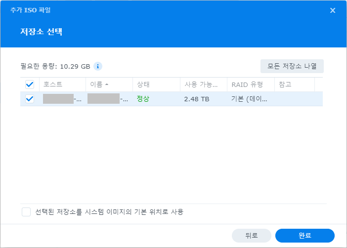 선택한 ISO 파일을 저장할 저장소를 선택한다. 일반적으로 기본 설정 값을 사용한다.