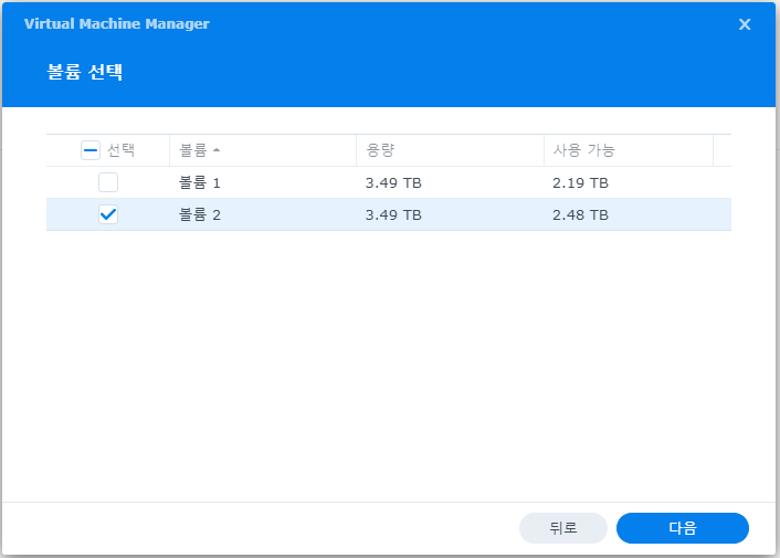 가상 이미지 파일들을 저장할 볼륨을 선택한다.