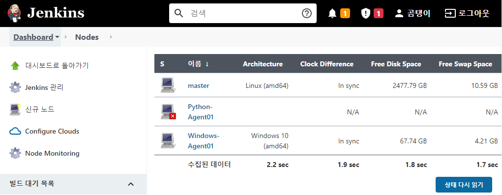 이제 모든 준비를 마쳤으므로 Jenkins에 해당 컨테이너를 에이전트로 등록한다.