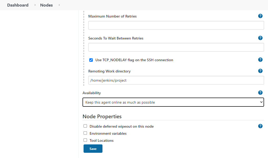 아래로 스크롤을 내려서 Remoting Work directory에 SSH 연결 이후 작업할 경로를 지정한다.