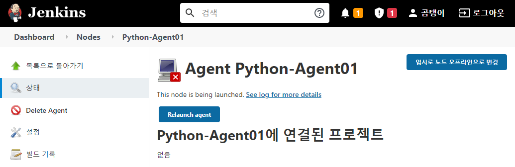 Relaunch agent를 클릭해서 연결을 재시도한다.