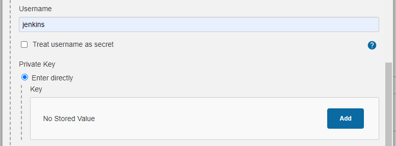 Jenkins Master 컨테이너의 /.ssh/id_rsa 값을 붙여넣기 한다.