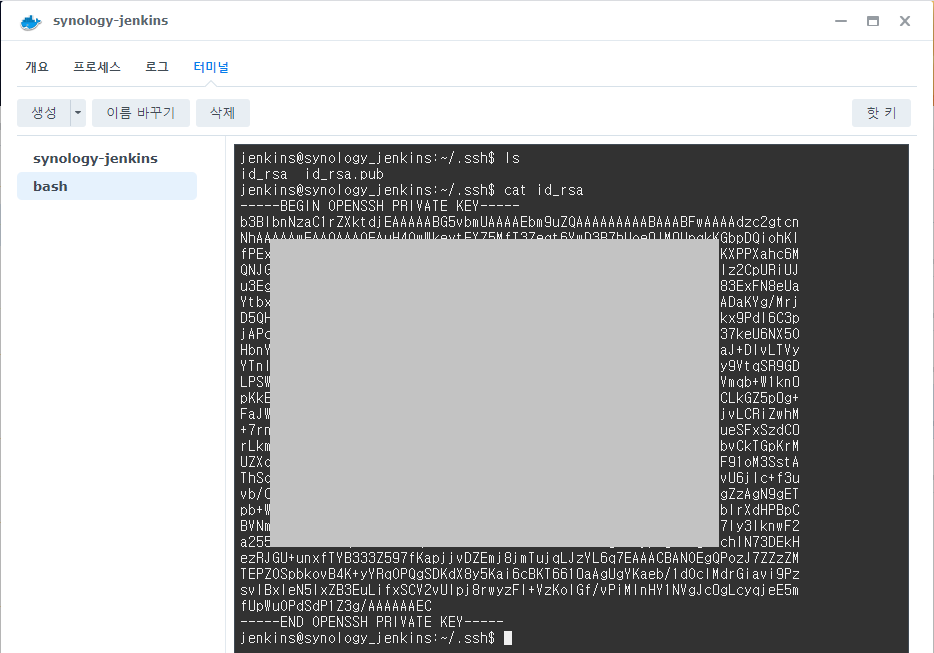 id_rsa 값을 확인한다. Jenkins에 에이전트 등록 과정에서 Private Key로 사용할 값이다.