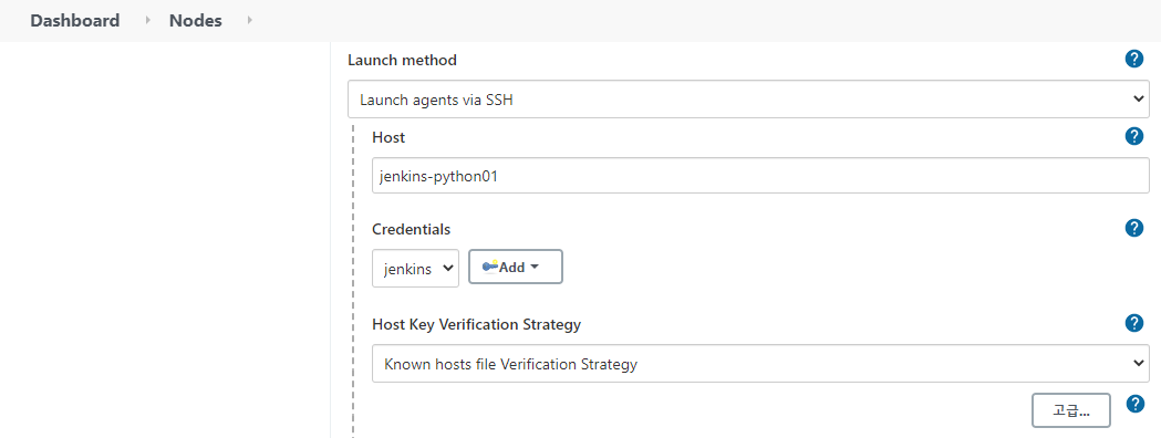 - Launch method : 'Launch agent agents via SSH'로 선택