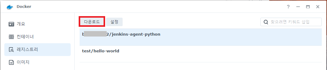 사용할 Docker 이미지를 Docker 사설 저장소에 배포했으므로, 해당 저장소에서 다운로드해야 한다.