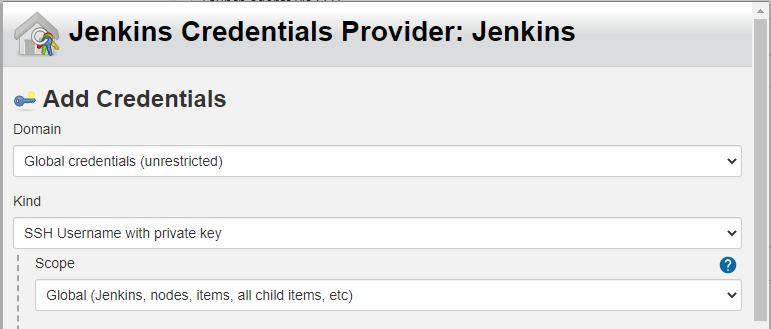 - Credentials [Add] 버튼 ⇢ 'Jenkins' 선택