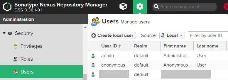 관리자 화면의 Security - Users - Create local user를 클릭한다.