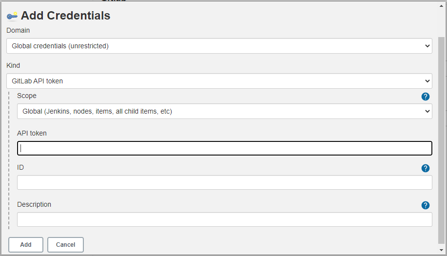- ID - 해당 인증 정보를 구분하기 위한 이름을 입력한다. gitlab으로 입력했다.
