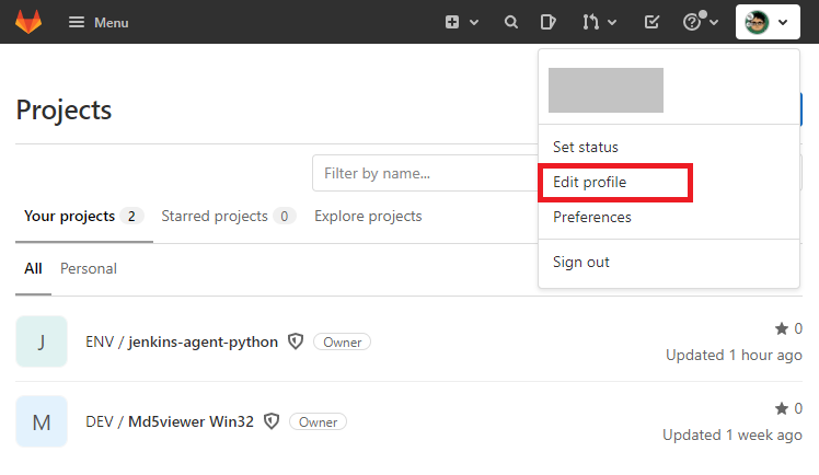 상단 우측의 사용자 아이콘을 클릭하고, Edit Profile을 클릭한다.