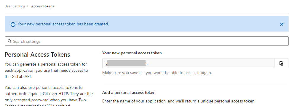 GitLab에서 생성한 Access Token을 사용하여 입력하고, Add를 클릭한다.