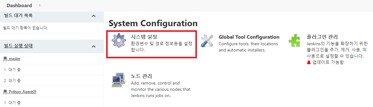 Jenkins 관리 - 시스템 설정을 클릭한다.