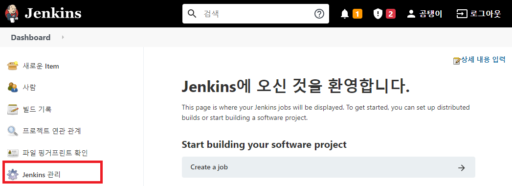 Jenkins 관리를 클릭한다.