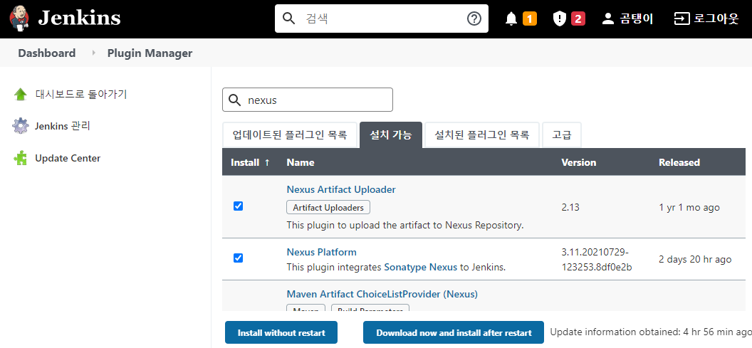 - Nexus Artifact Uploader - 빌드 산출물을 Nexus에 업로드하는데 필요하다.