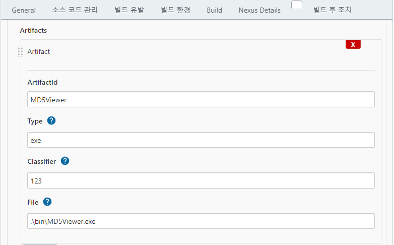 빌드 결과로 생성 된 exe 파일을 Nexus3에 배포하기 위한 설정이다.
