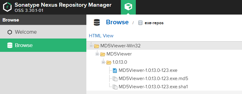 Nexus3의 exe-repos에서 확인해보면 정상적으로 업로드 된 것을 확인할 수 있다.