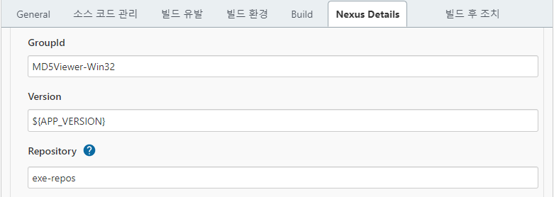 - Repository - 산출물이 저장 될 저장소 이름. exe-repos 저장소를 사용할 것이므로 exe-repos를 입력한다.