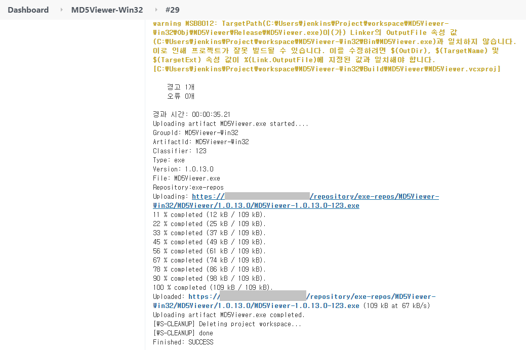 위의 설정대로 업로드하면 exe-repos 저장소에 다음과 같은 경로로 업로드 된다.