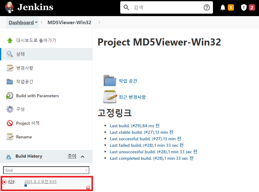 이전 포스팅에서 Jenkins에서 빌드 설정을 위한 사전 작업과 빌드 구성에 대해 다뤘다. Jenkins에서 빌드 설정을 위한 사전 작업은 다음 포스팅을 참고한다. Jenkins에서 윈도우 에이전트를 이용한 Visu