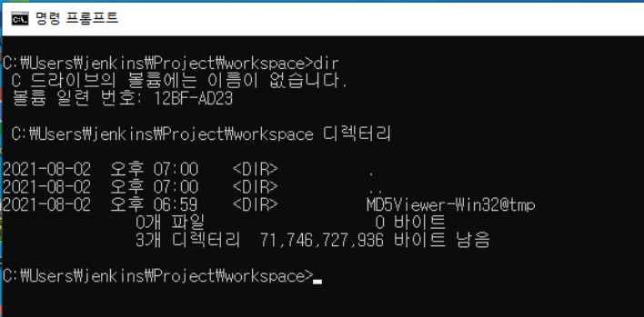 윈도우 빌드 에이전트의 workspace는 C:\Users\jenkins\Project로 설정되어 있다.