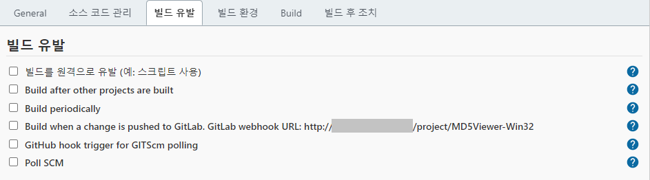 빌드 유발 설정