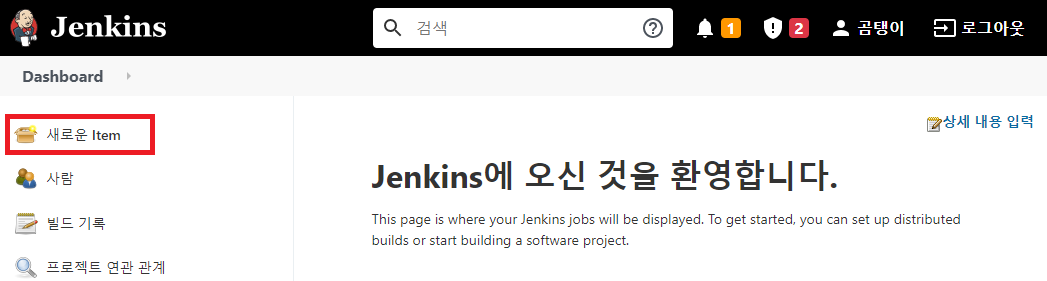 Jenkins에서 새로운 Item을 클릭한다.