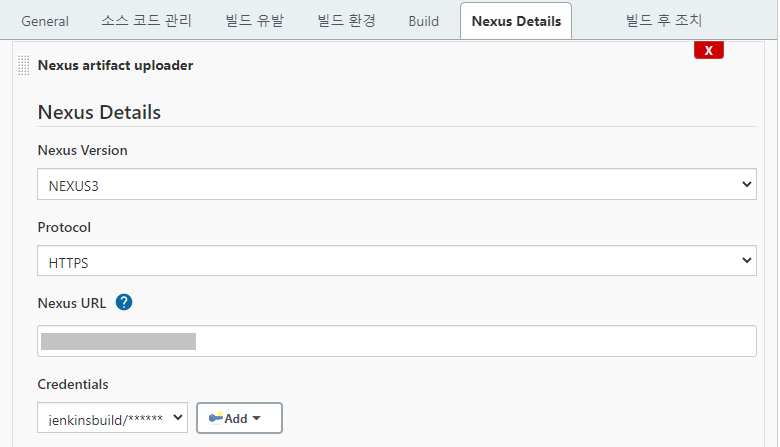 - Nexus URL - NEXUS의 주소와 포트를 입력한다. URL:Port만 입력한다. (ex. nexus.test.com:1234)