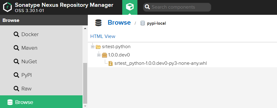 Nexus3의 pypi-local에서 확인해보면 정상적으로 업로드 된 것을 확인할 수 있다.