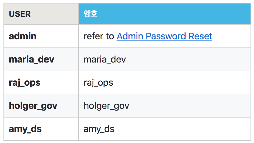 - 컨테이너 실행 후 약 10분 정도 지나야 모든 서비스를 정상적으로 사용할 수 있다.