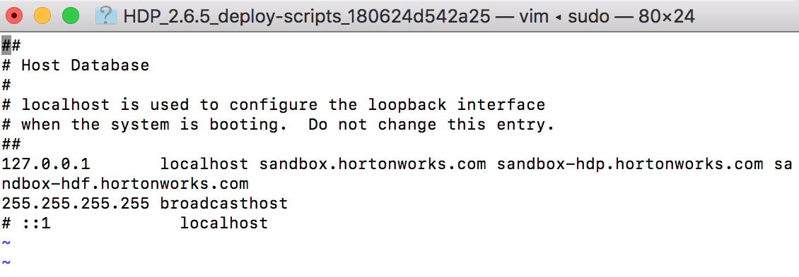 # 수정 전 (27~32번 라인) # start the docker container and proxy if [ "$flavor" == "hdf" ]; then hostname="sandbox-hdf.hortonworks.com" elif [ "$flavor" == "hdp" ]; then hostname="sandbox-hdp.hortonworks.com" fi # 수정 후 hostname="sandbox-hdp.hortonworks.com"