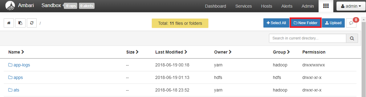 - Ambari의 File View를 이용해서 정상적으로 업로드 되었는지 확인한다.