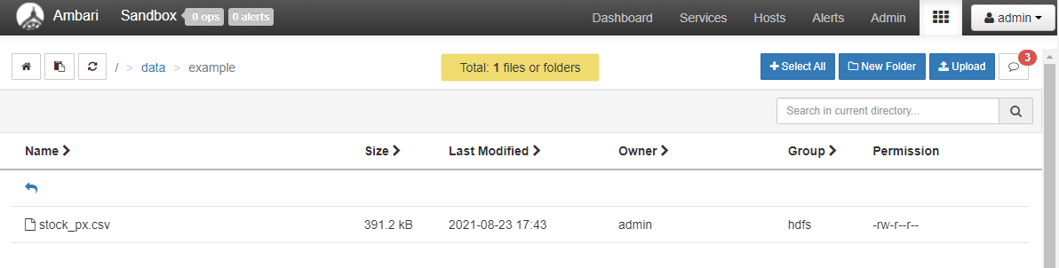 - Ambari의 File View를 이용해서 정상적으로 업로드 되었는지 확인한다.