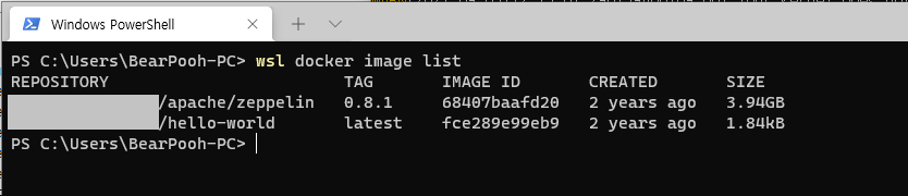 > wsl docker image list
