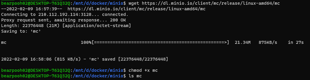 $ wget https://dl.minio.io/client/mc/release/linux-amd64/mc