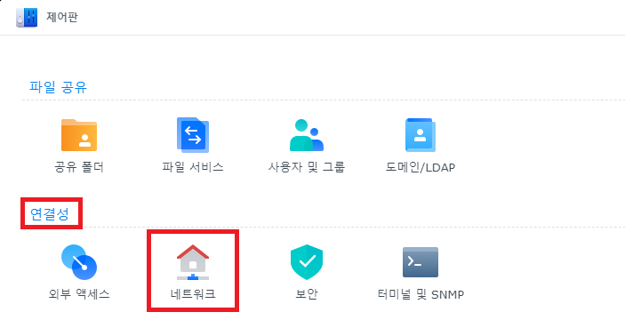 제어판을 실행하고 연결성 - 네트워크를 클릭한다.